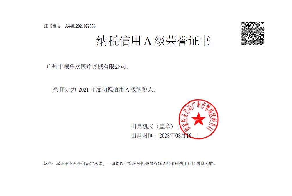 祝賀我司獲得2021年納稅信用A級榮譽證書